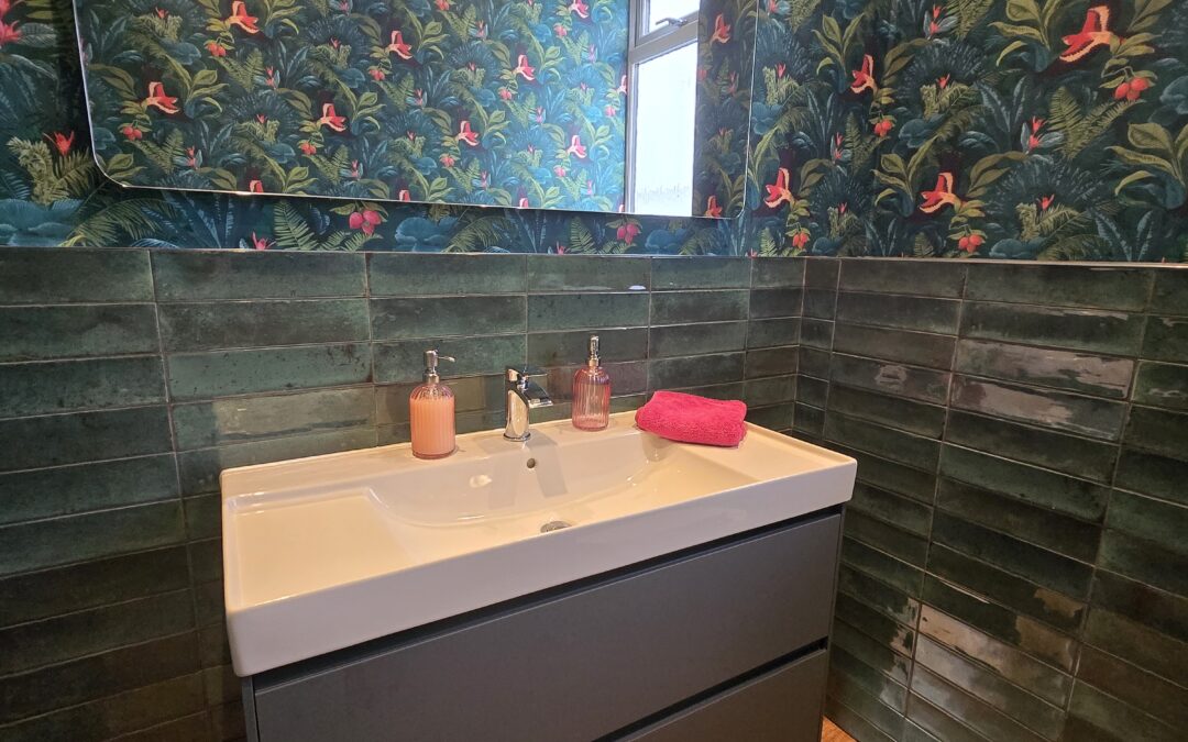 To create a more open and inviting space, we removed the existing wall, significantly enlarging the room. The ceiling was then lowered to allow for the installation of recessed spotlights, ensuring the room is well-lit and modern. In addition to the spotlights, we introduced mood lighting to offer a more dynamic and ambient atmosphere, providing versatility in the lighting depending on the occasion. The result is a bright, vibrant, and visually striking guest bathroom that combines both functionality and aesthetic appeal.