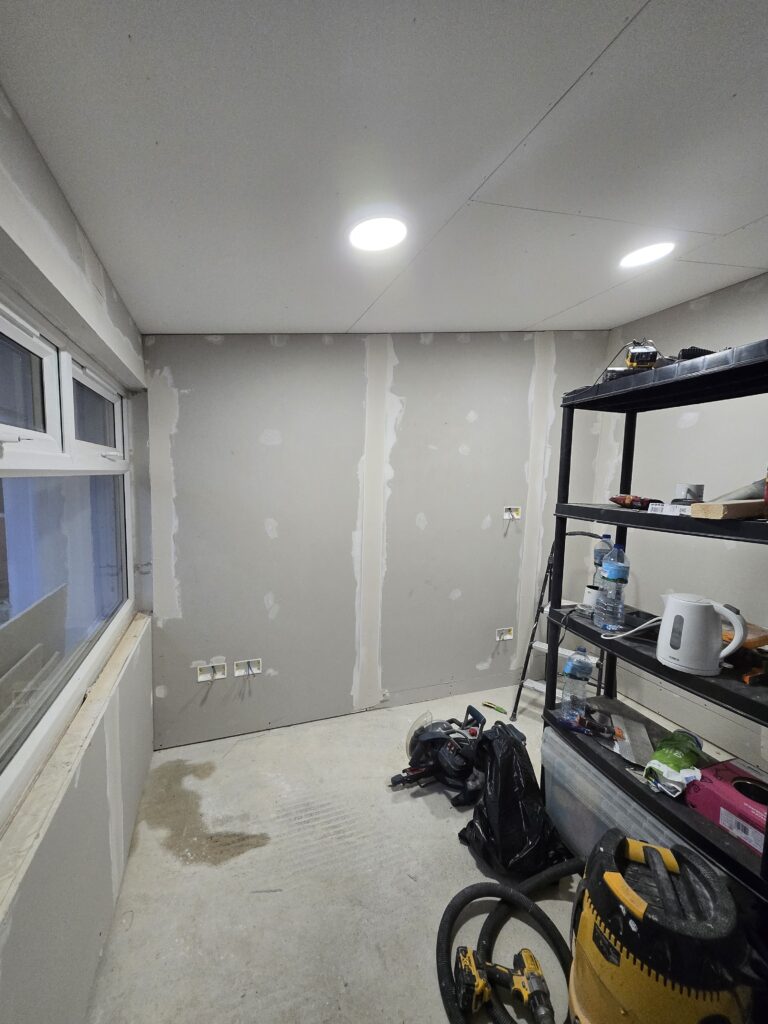 Transformed the space with a modern upgrade! We replaced the old door and windows with energy-efficient PVC double glazing, insulated the walls for better warmth and comfort, and added a sleek clean finish. Underfloor heating was installed to keep the space cosy, and a stud wall was built to create a separate working area. To top it off, we relocated the sockets to make the layout more practical and user-friendly. A complete transformation designed for comfort and functionality!